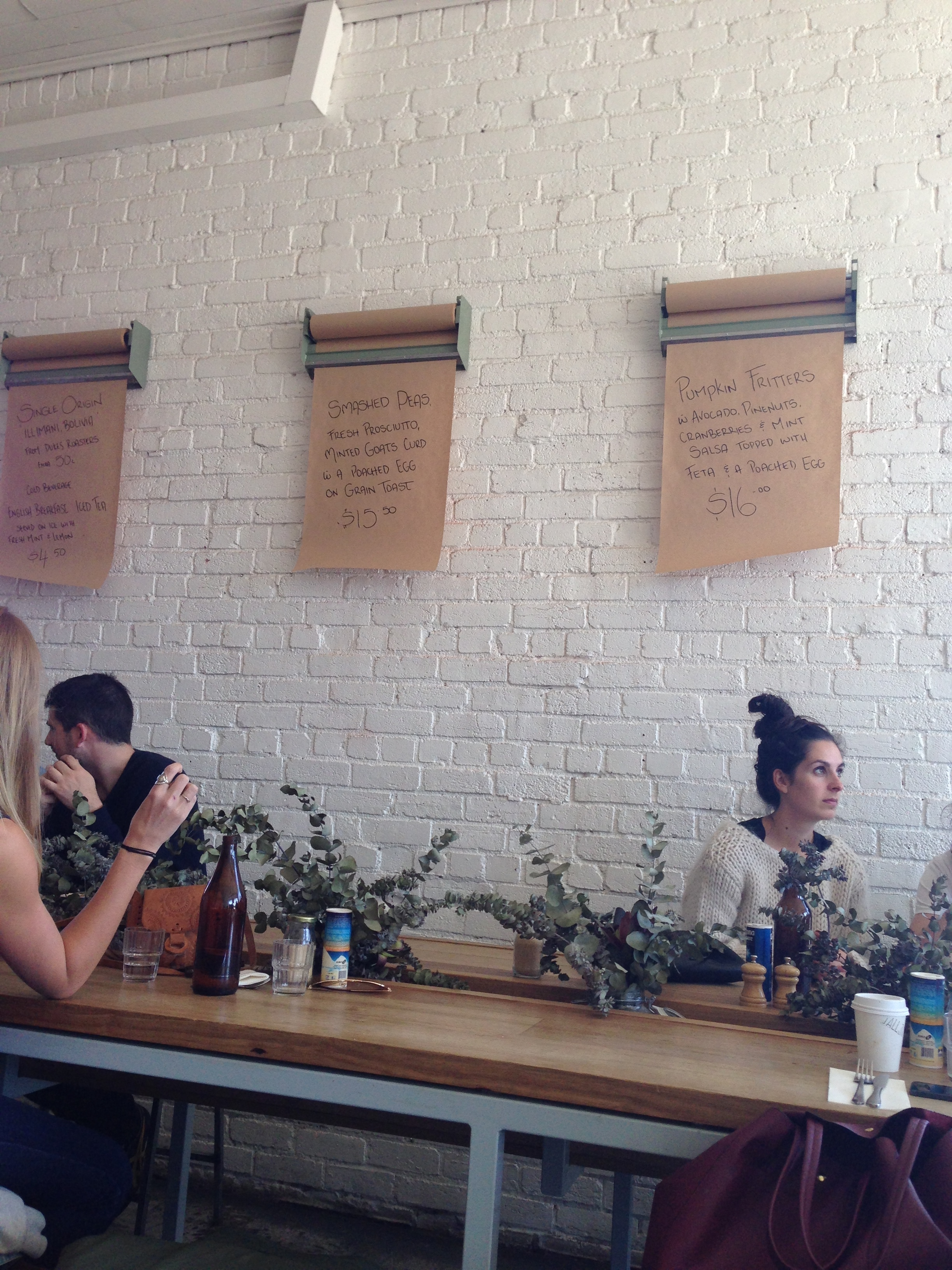 i keep hearing about a cafe in prahran that is getting a lot of attention and buzz around melbourne as another “it” place for breaky, so this morning hubby and i decided to check it out. we took a lovely wander past the shrine of remembrance and through fawkner park along st kilda road and then headed down to 60 commercial rd. my grumbling tummy wasn’t happy to meet with a crowd of about 20 people standing outside “tall timber” and i inwardly groaned about the likely wait. to my pleasant surprise though, after putting our name on the list with the super-friendly steve, we were seated in about 10 minutes… win!