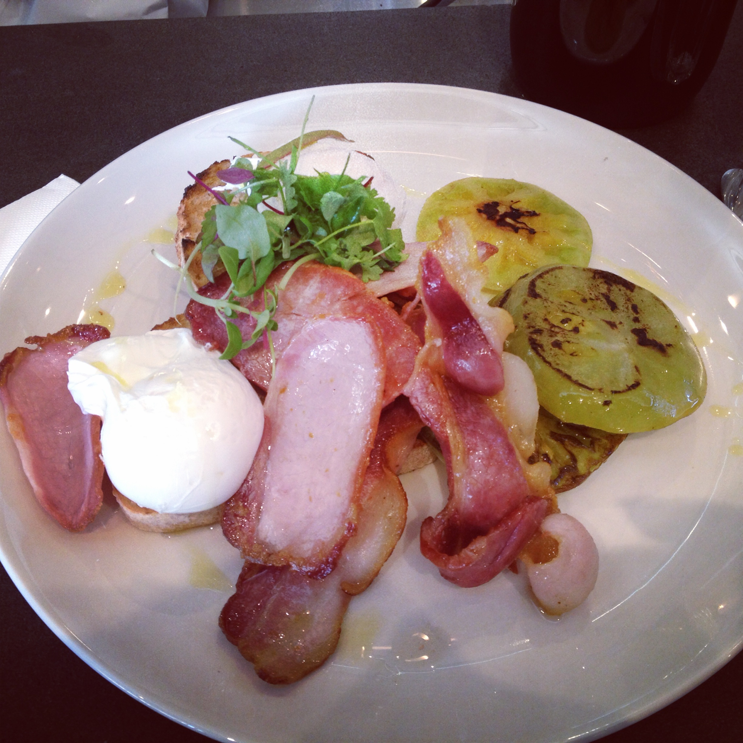 bacon + eggs with green tomato