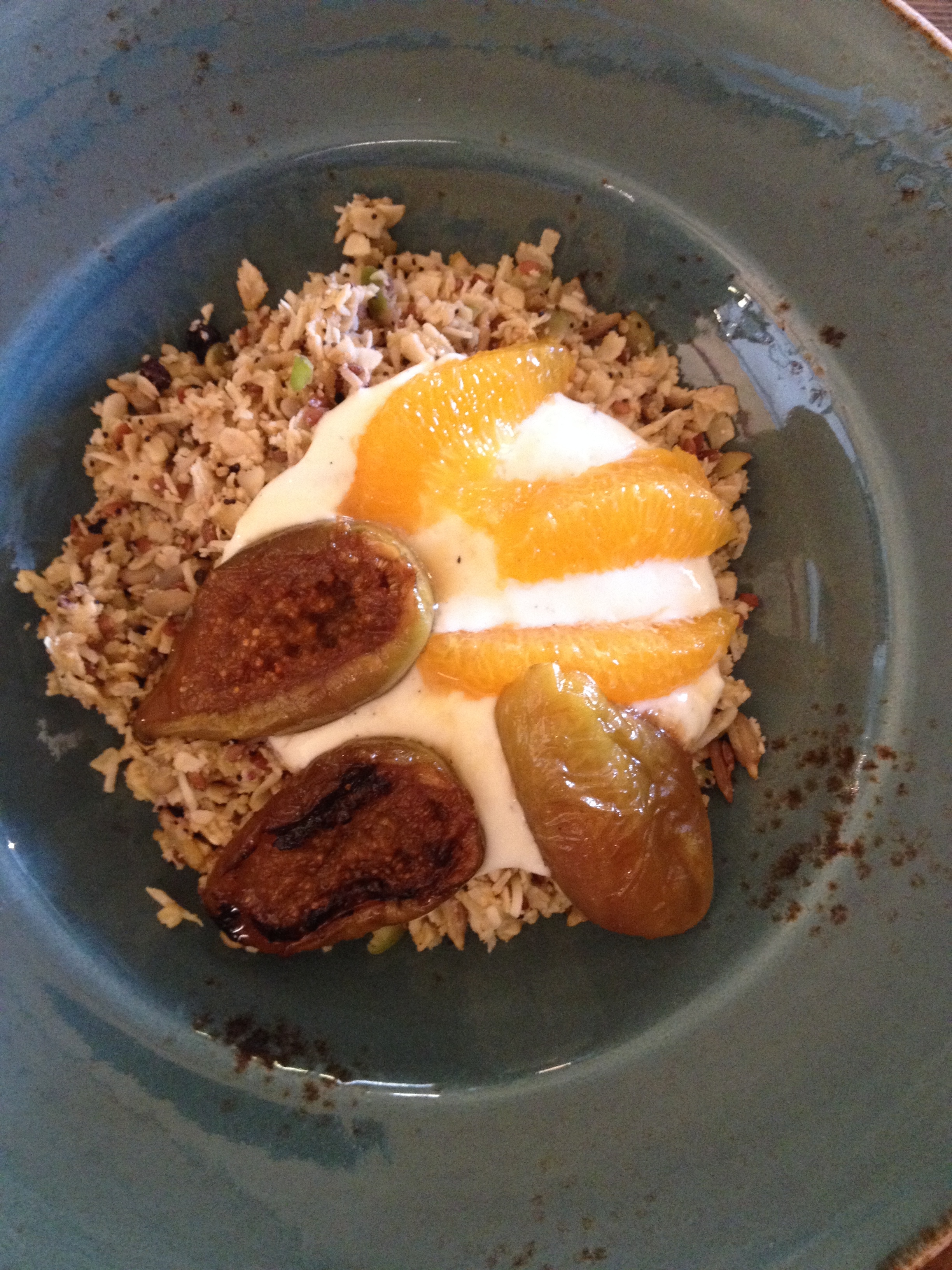this dish is delish. the grilled figs were perfectly sweet and offset the citrus excellently. the granola and chia is softer than your traditional crunchy granola with plenty of nuts and seeds, and served with just the right amount of yoghurt.