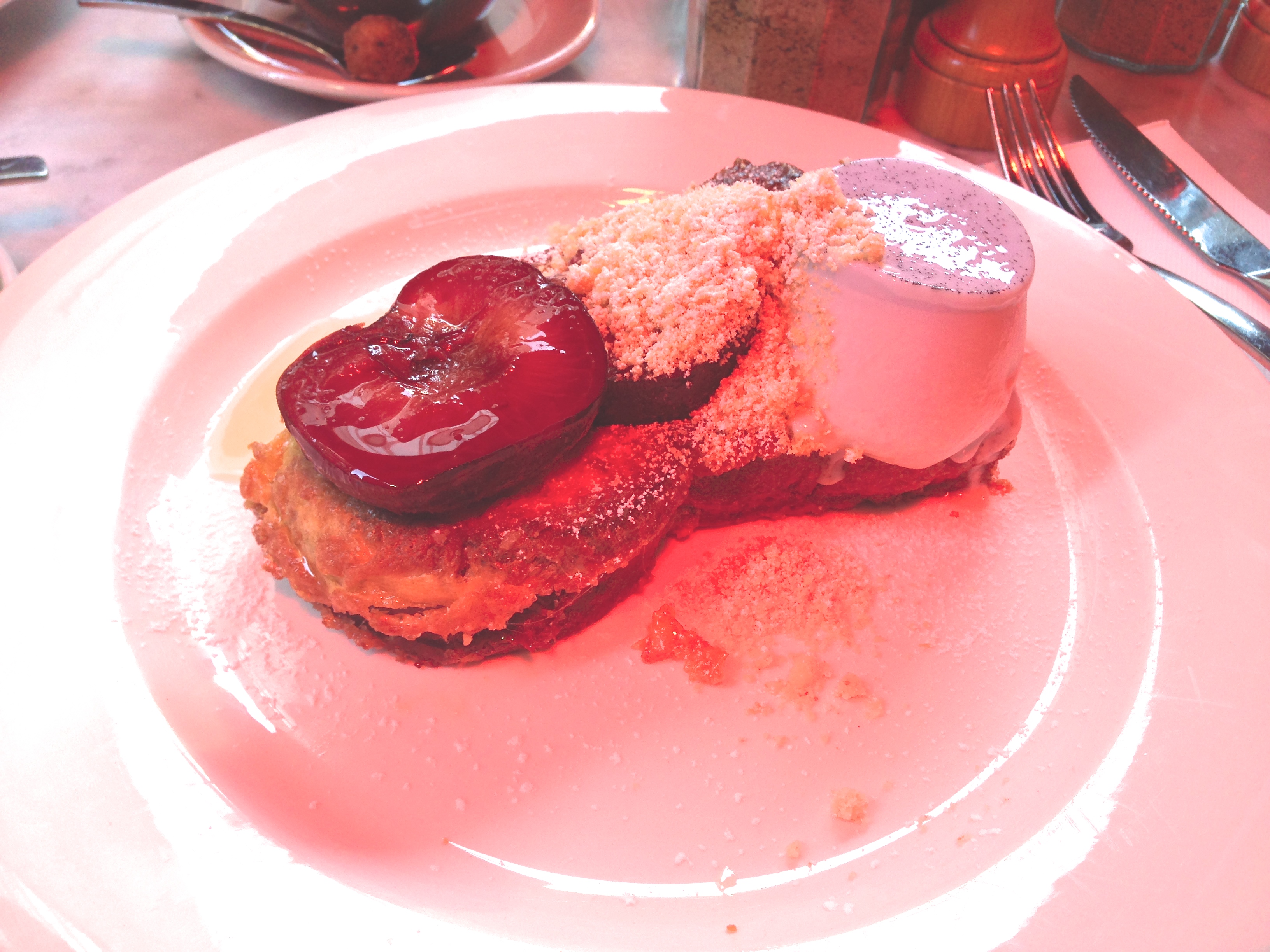 i am a sucker for french toast and this was my choice this morning after having some serious instagram food-envy recently. it was delicious! the cinnamon-sugar brioche was crunchy on the edges, soft on the inside. the poached fruit and crumble added fantastic flavour and texture. and that lavender panna cotta…. oh my goodness … i could’ve eaten it on its own! not too sweet or overpowering, just right!