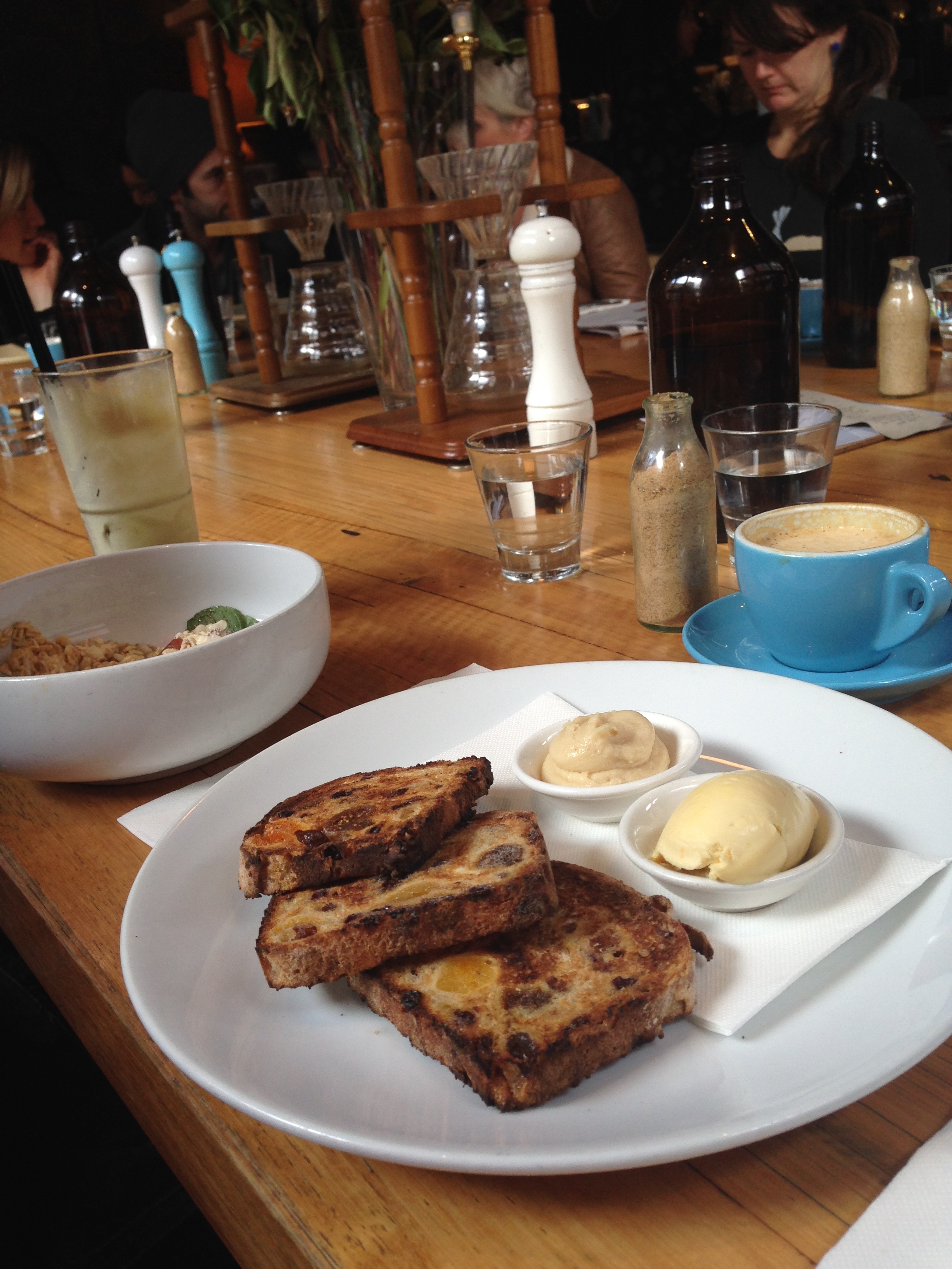 i used to buy this toast on a weekly basis from the eumundi markets when we lived in qld – it is (in my opinion) the best fruit toast out there with delicious chunky fruit pieces. i loved the creamed honey served with this and the mascarpone was a bit of a weekend indulgence.