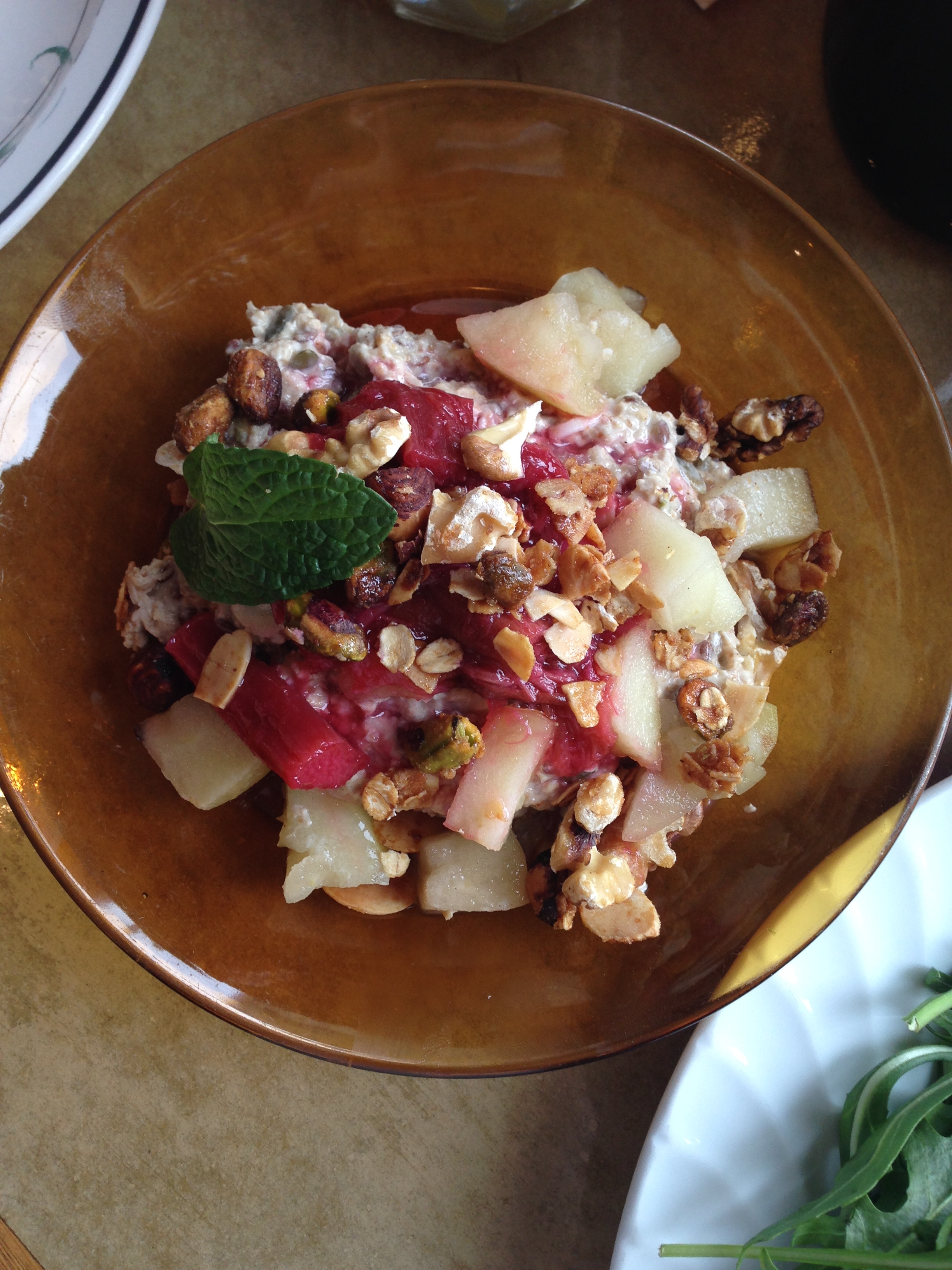 i’m loving anything served with poached rhubarb at the moment, but even without it the bircher could stand well alone on its own. oats were creamy + the extra crunch of the nuts made this is a great dish (and i’ll admit to going back for this again).