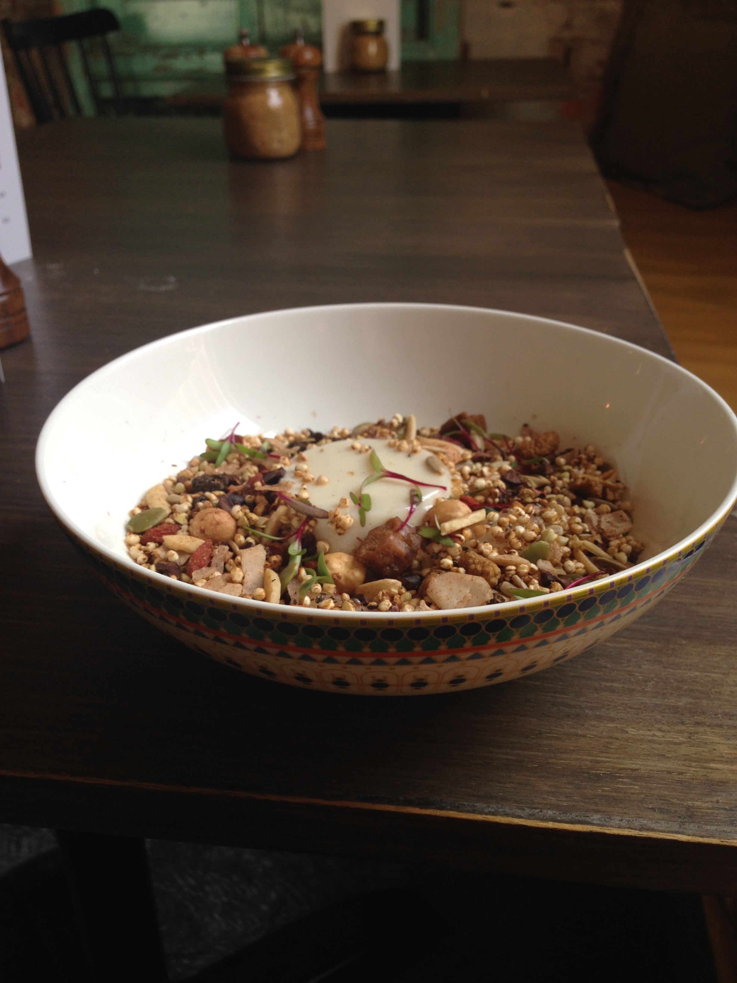 this earthy + wholesome “yousli” was a perfect way to end our brunch – full of flavour, texture + nutrition. the coconut panacotta was subtle + light, and with a side of milk this was delicious!