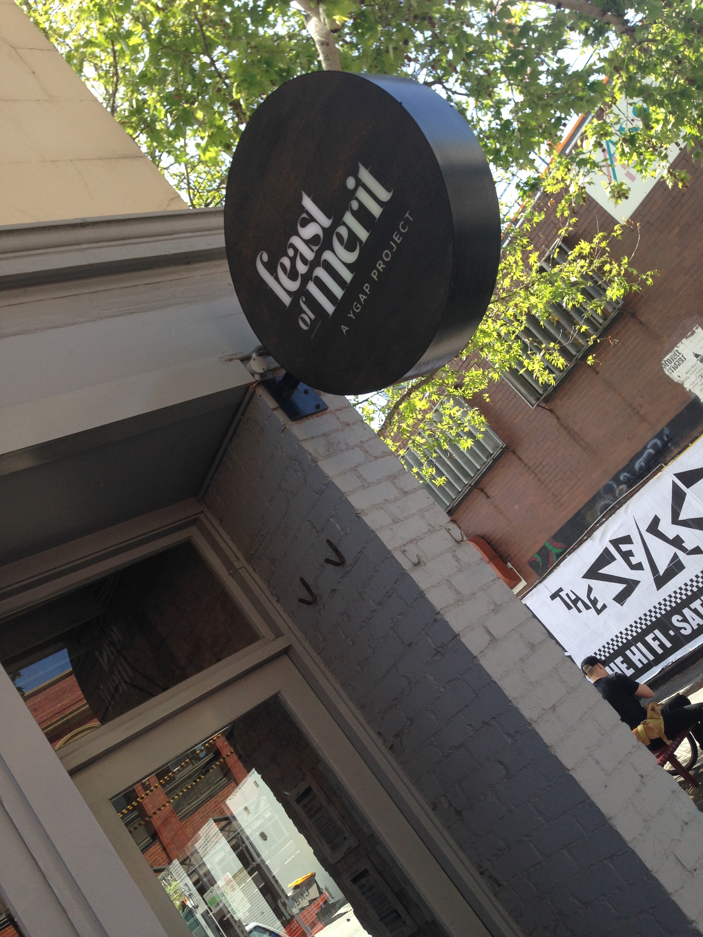 it’s been a while since a decent “walk and brunch”, so after an intense couple of days of work in sydney + a beautiful sunny day emerging in melbourne, the husband + i spent the morning walking down to feast of merit in richmond. according to their website + menu “feast of merit is a social enterprise owned and run by ygap, and all profits raised directly support (our) youth education and youth leadership projects in malawi, ghana, rwanda, bangladesh, cambodia and australia”. the cafe offers “delicious seasonal produce, raw foods and an assortment of locally sourced drinks”. their philosophy is driven by “being local, ethical and sustainable”. this place is one i’ve had my eye on for some time, so i was excited to try it this morning.