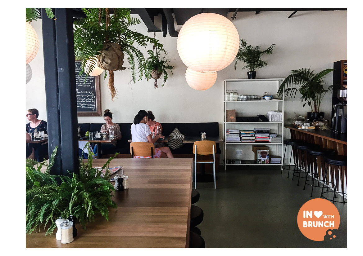 my first impression upon walking in was the smell… and in a good way! you could literally taste the bacon sizzling away in the kitchen, instantly making my mouth water! the layout of the cafe itself is really spacious, with a beautiful wooden bench in the centre and lots of hanging ferns and greenery throughout – a really lovely atmosphere.