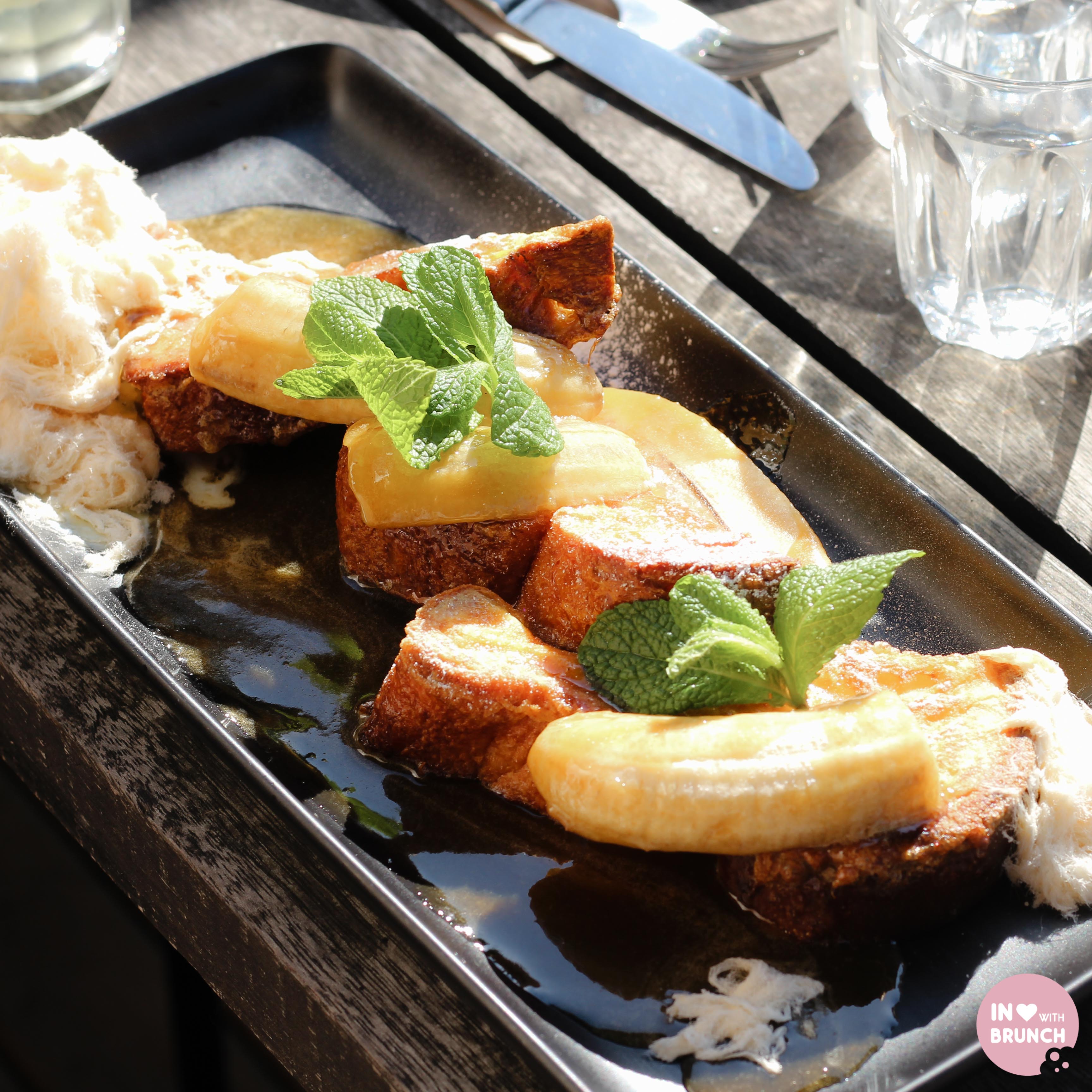 the jack’s french toast: brioche french toast with caramelised banana, butterscotch sauce, persian fairy floss and vanilla ice-cream