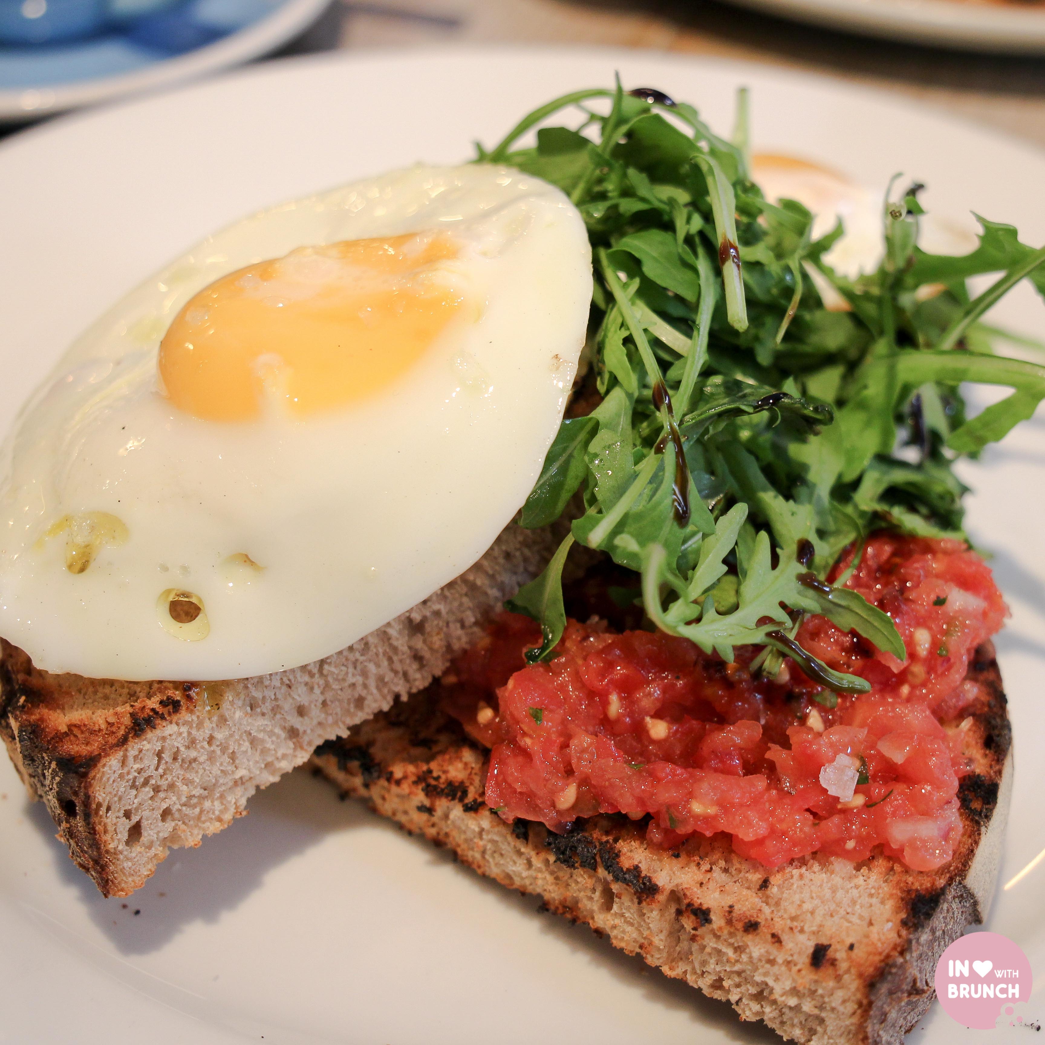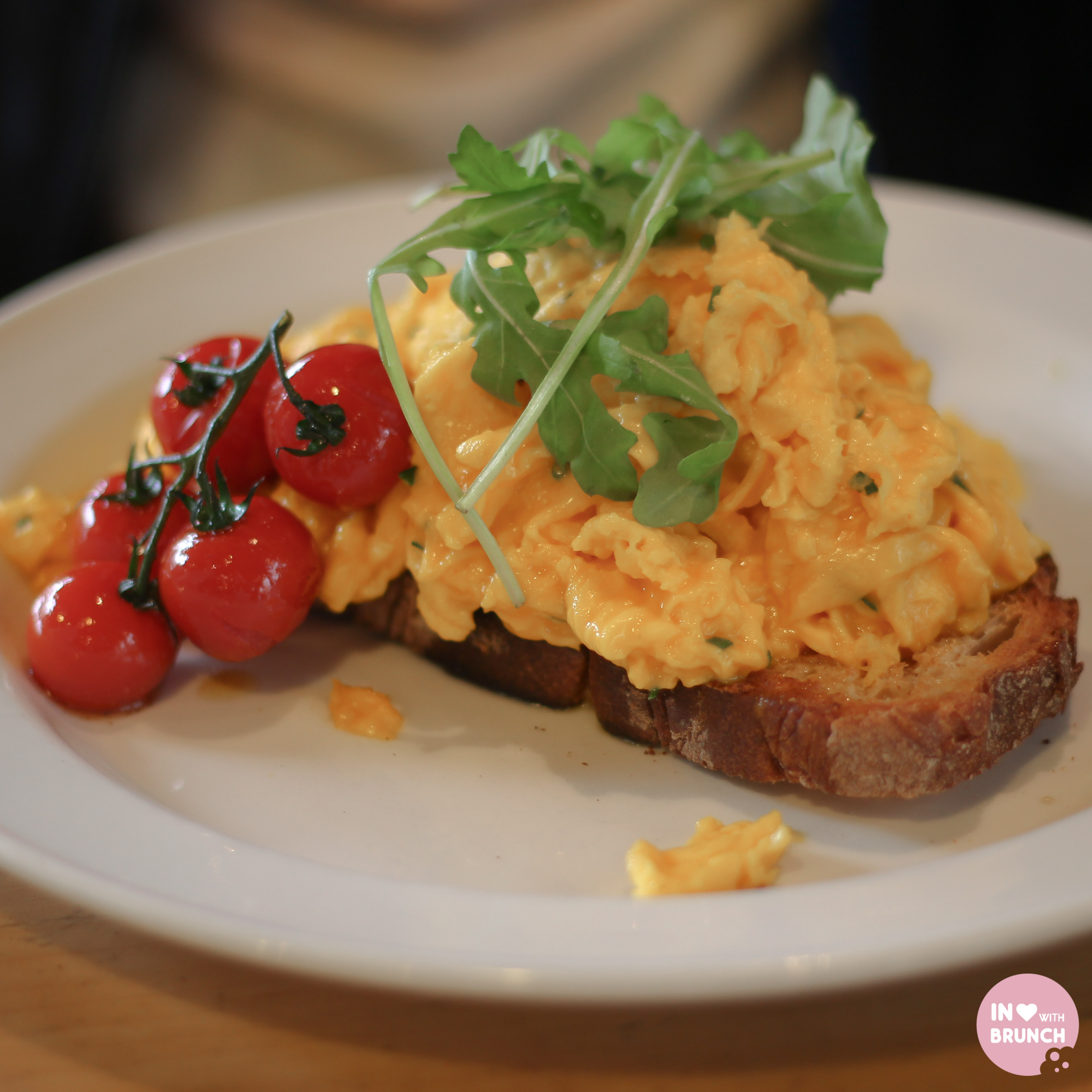 franz + evans is located across the road from the iconic brick lane, home to the brick lane markets on Saturday’s. with a mediterranean influence, there is an extensive selection of salads, sandwiches + cakes available at the deli counter. we went for the scrambled eggs on toast served with juicy cherry tomatoes.